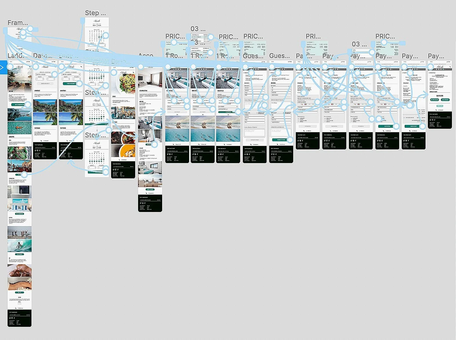 Creating the high-fidelity prototype and programming the interactions brought the whole project to life. We could see the color and font combinations with the resort photos to visualize what users would see when going through the process.