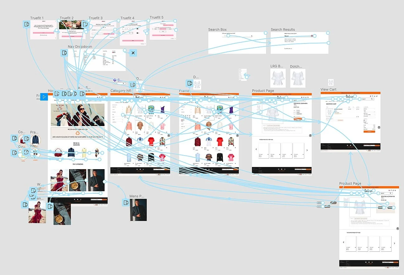 We also included a flow that included a Truefit sizing guide where users could input their measurements and filter results individually. The blue lines in the image are our interactions.